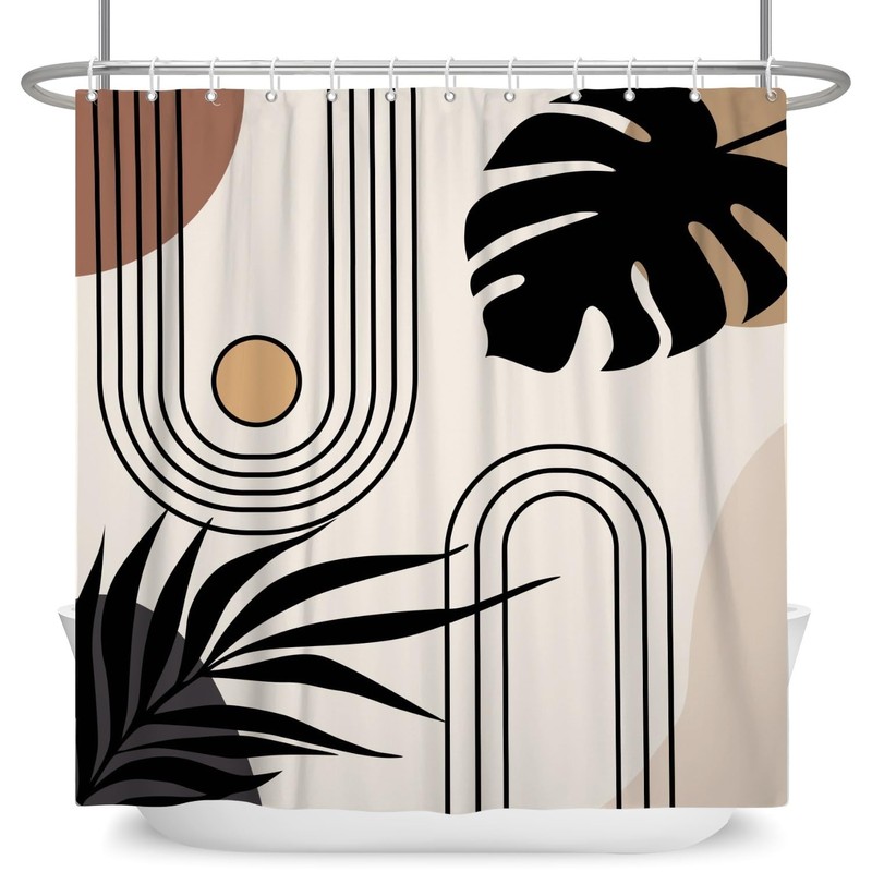 Xiaoterna Boho Sun Line Shower Curtain Retro Abstract Bathroom Curtain Black Leaves Sun Shower Curtain Rustic Countryside Shower Curtain Machine Washable Waterproof Fabric 180x220cm