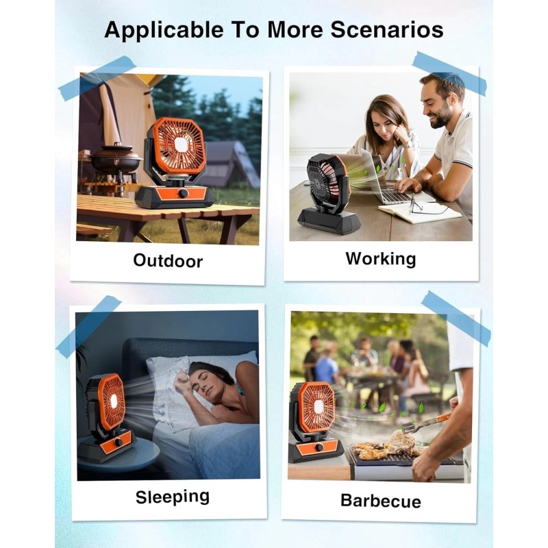 Stay cool and powered up wherever you go with this versatile, high-performance rechargeable fan. Whether you're camping in the wild, working at your desk, or lounging at home, this fan is designed to meet all your cooling and convenience needs.