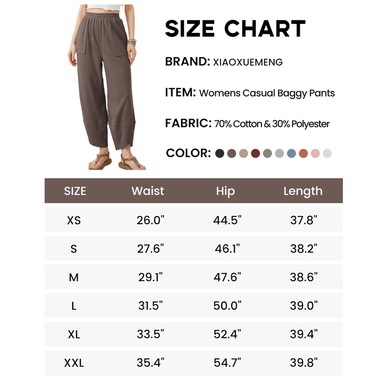 Xiaoxuemeng Womens Baggy Wide Leg Pants Casual Elastic Waisted Palazzo Harem Pants with Pockets(Coffee-S)