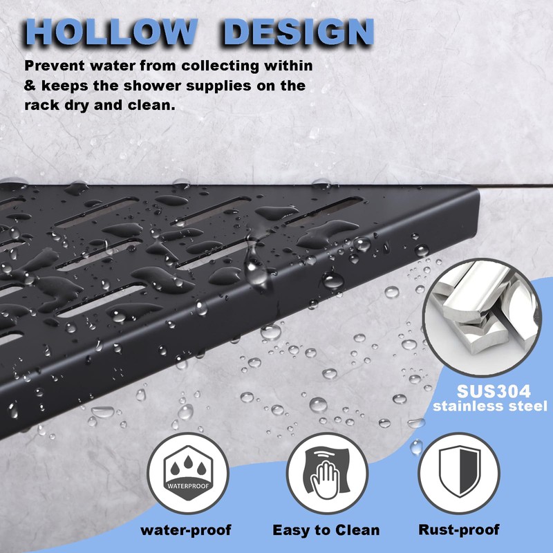 - 【Modern Appearance & Easy To Clean】The shower corner shelf simple and luxurious design not only serves as a shelf, but also serves as a bathroom decoration.In addition,The hollow design of the shower rack allows for quick drainage help prevent water from collecting within and keeps the shower supplies on the rack dry and clean.