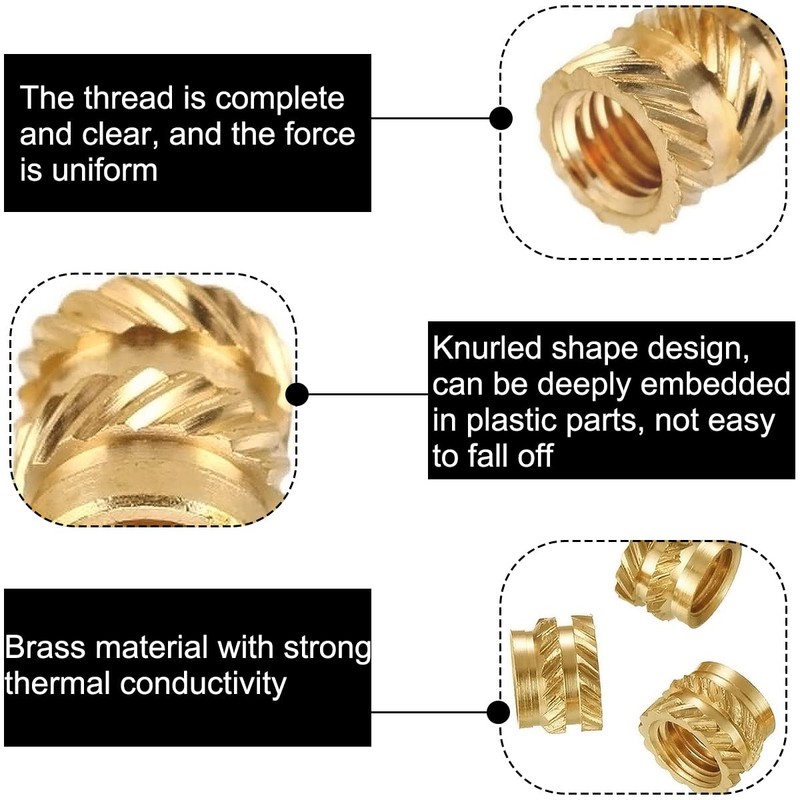 - ✅[Stable and Durable]: Insert nuts are made of top quality brass, excellent corrosion resistance, thermal conductivity, excellent craftsmanship ensures long term use and easy insertion