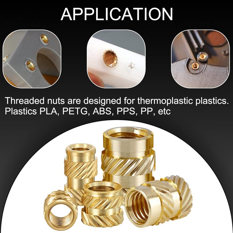 - ✅[WIDE APPLICATION]: Threaded nuts are designed for thermoplastic plastics. Plastic PLA, PETG, ABS, PPS, PP, etc