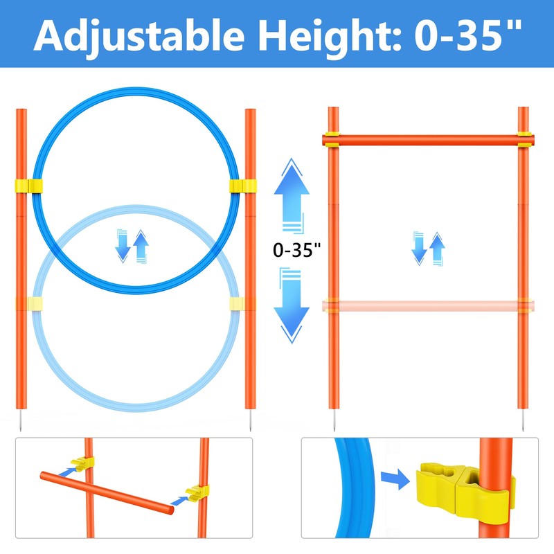 - The Perfect Dog Agility Set - Made of ABS material, safe and non-toxic, Lightweight, durable that can be used for park, backyar. Perfect for dogs sharpens obedience, speed, dexterity, and dog quality of life; Use for casual play or introductory training.