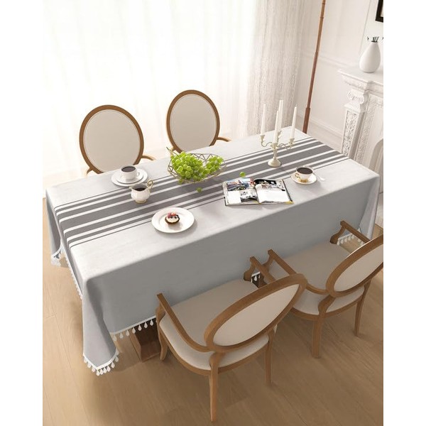 Xiazhilaio Waterproof Rectangle Tablecloth 60" x 102",Modern Striped Table Cover with Tassels,Wrinkle Free Wipeable Table Cloth for Kitchen Dining Party Outdoor