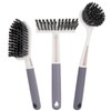 Xicennego 3 Pack Kitchen Cleaning Brush Set,1 Pot and Dish Cleaning Brush with Long Handle,1 Kitchen and Bathroom Brush with Scraper Strip, 1 Hard-Bristled Brush for Sink, Countertops, Tiles(Grey