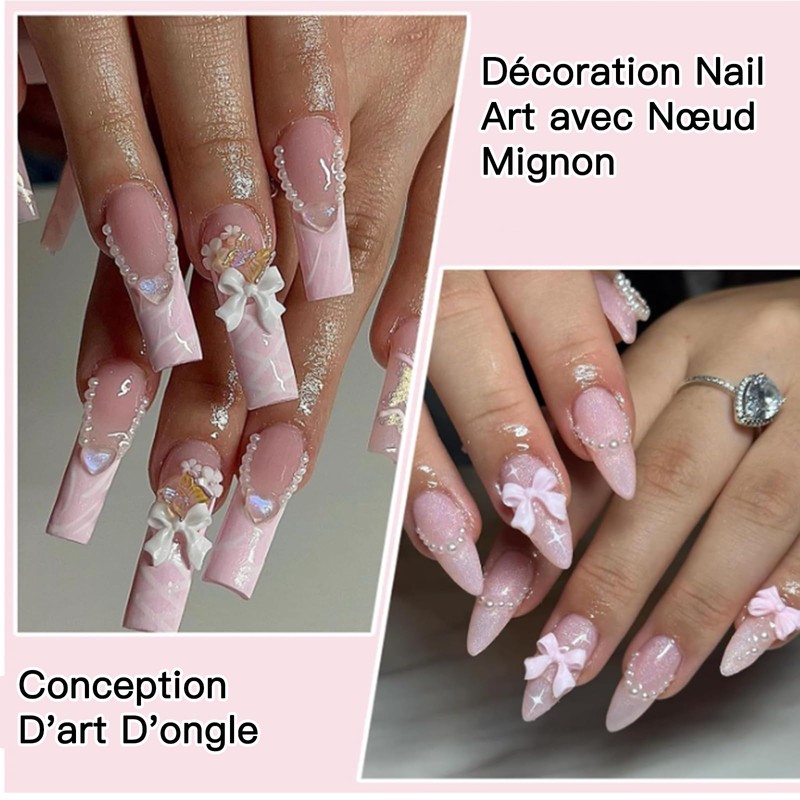 - 【Ausreichende Menge】 Dieses Maniküre-Set enthält 6 verschiedene Farben von Schleifen und Perlen in verschiedenen Größen, um Ihren täglichen Maniküre-Bedarf zu erfüllen.