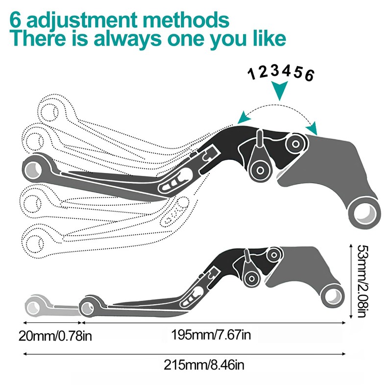 6 adjustment positions, you can easily adjust the length and distance between the lever and the grip to suit your palm size by simply adjusting the fixing screw on the lever.