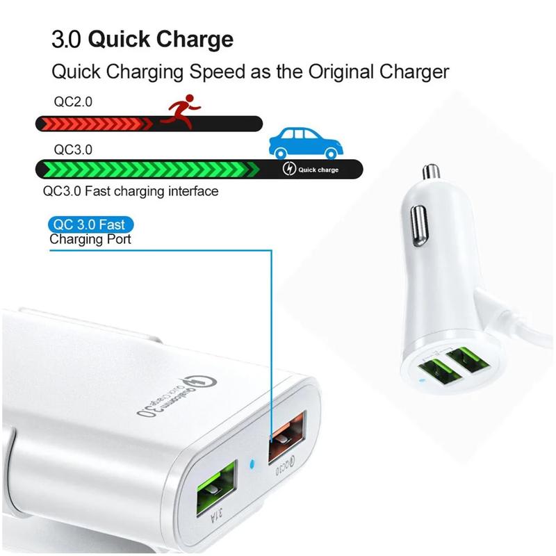 【XIDUODUO TOOL】QC3.0 fast charge 8A one to four front and rear seat car charger 4USB with cable multi-function flash charge four-port car charger - Color: black