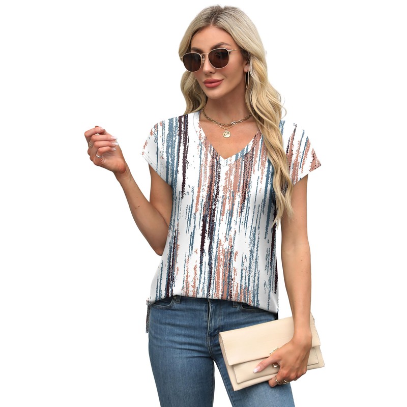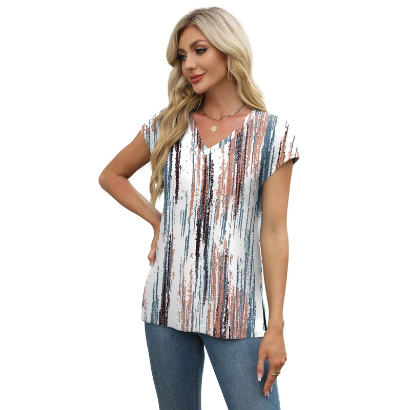 - Features: Casual Loose T-shirts with Cap Sleeves, V Neck, Side Slit. Classic and simple shirt with trendy pattern print is long enough to cover your hips,hide your belly.
