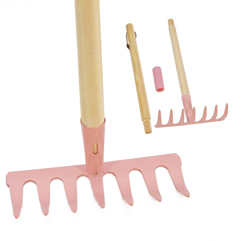 Xifando Kids Garden Lawn Tine Rake-Small Lawn Heavy Rake with Metal Tines, 28.8 inches/73cm Length, Wooden Handle, for Kids Garden Labor (Pink)