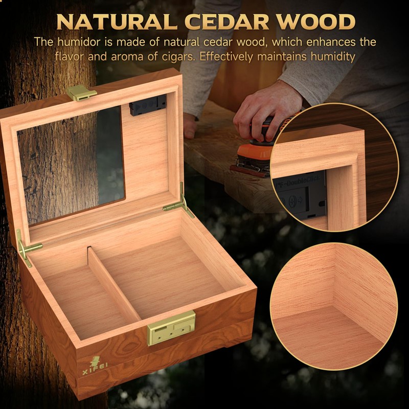 - [Elegant Display and Unique Design]: XIFEI cigar humidors are made of natural cedar wood, which preserves the flavor and aroma of the cigars. The glass top allows you to display your cigar collection without opening the humidor, while the personalized pattern adds a touch of uniqueness to the humidor box