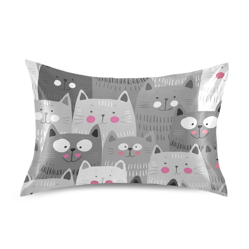 xigua Cat Satin Pillowcases Breathable Pillow Case for Hair and Skin, NO Zipper Pillow Cover with Envelope Closure for Sofa Bed Couch, Standard Size 20 x 26 Inch
