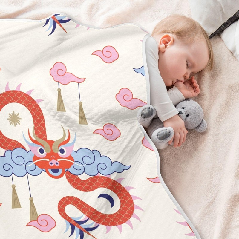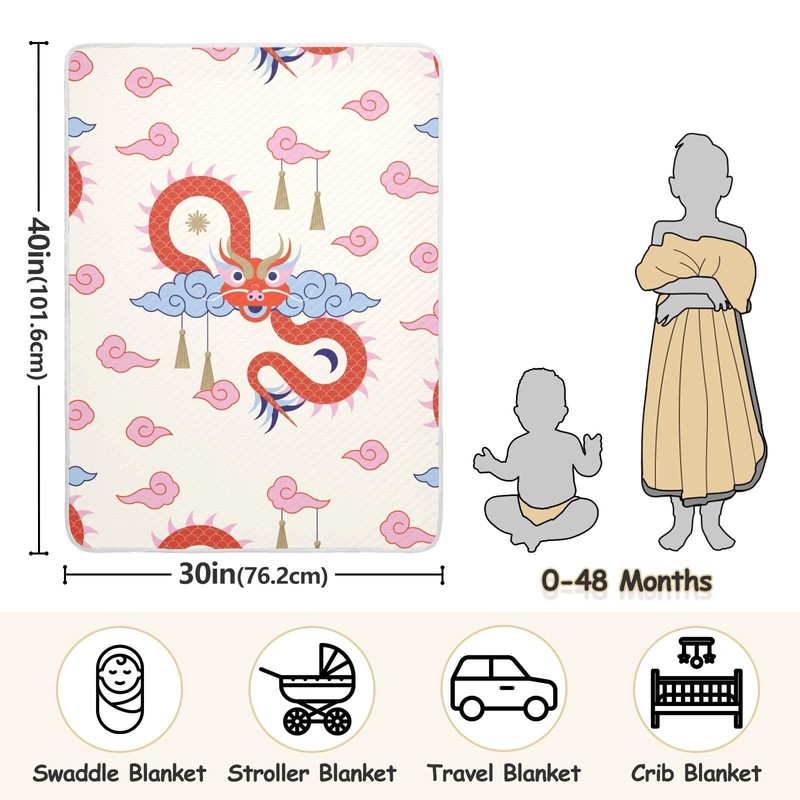 xigua Chinese Dragon Pattern Baby Blankets for Boys Girls, 30 x 40 Inch Super Soft Toddler Newborn Blanket, Double Layer Blanket for Crib Stroller Travel