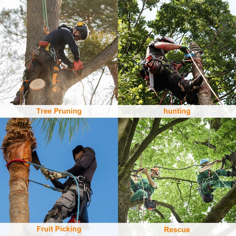 - Versatile Functionality: Our tree climbing equipment is designed for a wide range of applications, including fruit picking, logging, jungle survival, outdoor sports, forestry work, and indoor climbing. Tip: As you gain proficiency, use this equipment to reach greater heights with confidence. Whether you're pruning trees or embarking on a recreational climb, this kit is your go-to solution for all your climbing needs.