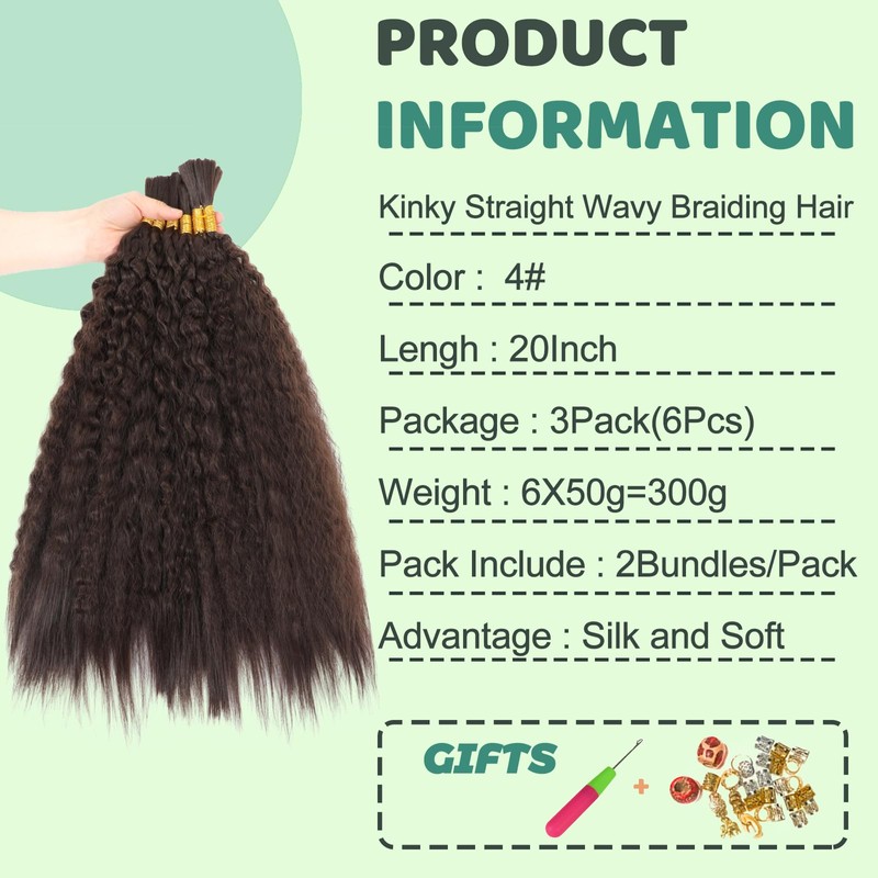 XIIMENALU Kinky Straight Wavy Braiding Hair for Boho Braids Wet and Wavy Bulk Hair for Braiding No Weft Yaki Straight Bulk Hair for Micro Braiding Rebundle Braids (4#, 20inch(3pack(6pcs)))
