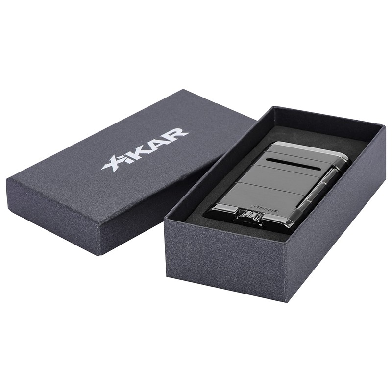 XIKAR Allume Triple Jet Tabletop Lighter, Engineered for Performance, Crisp Side Squeeze Ignition, Gunmetal