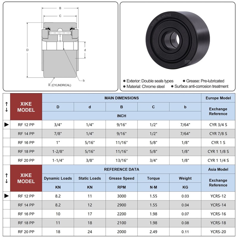 XIKE 1 Pcs CYR 3/4 S Double Rubber Seals Cam Yoke Roller Bearings 3/4" x1/4" x9/16, Equivalent RF12PP, NACV12XLL/3AS, Y24L,RBY 3/4,YR3/4X and YCRS12.