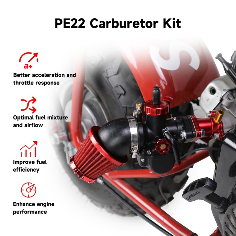 - Features: The 212cc PE22 carburetor kit is anodized for a smoother appearance, which has excellent corrosion wear resistance, not easy to damage and very reliable property. Unique Pitch-black appearance gives a good pizzazz to the engine and kind of really makes it flashy