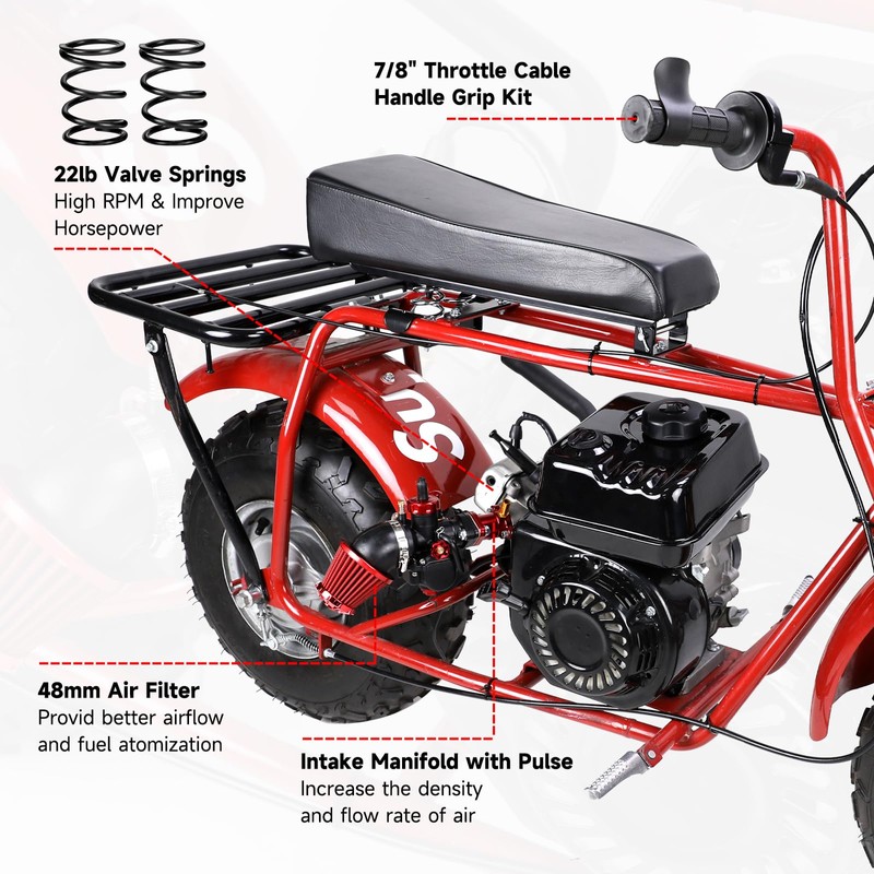 - Improve Power & Economy: This Predator 212 performance parts with PE22mm carburetor, intake manifold, 22lb valve springs and throttle cable kit can upgrade your mini bikes and go-karts engine simply, which have higher performance for more economical fuel efficient. It provides better throttle response, stable idle speed, smoother power output and air flow. The air filter can filter dirt and crud from the air, resulting in better horsepower and smoother running