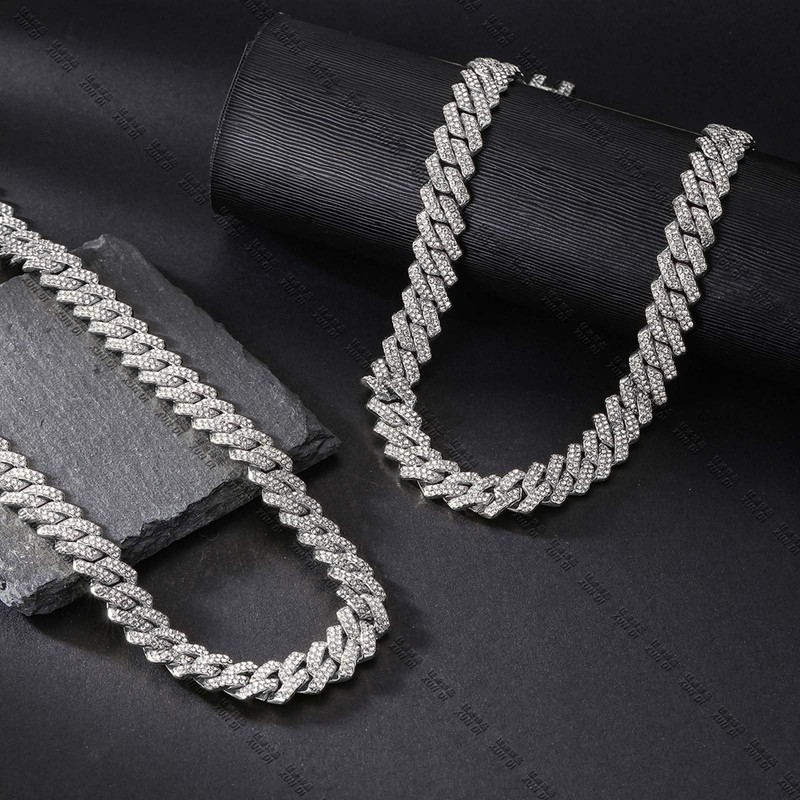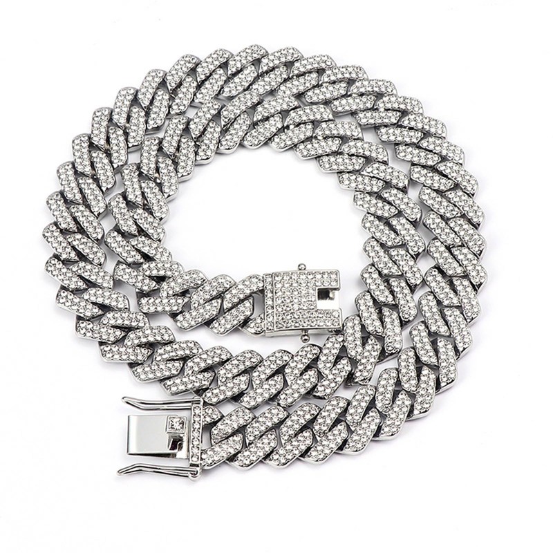 - 💎Material: High quality gold silver plated chain necklace with over 300 rhinestones,Hand-made process to ensure product can be precious and shine more,all the rhinestones are hand inlaid by craftsmen,cuban link necklace it's nickel-free, lead-free and harmless to health.