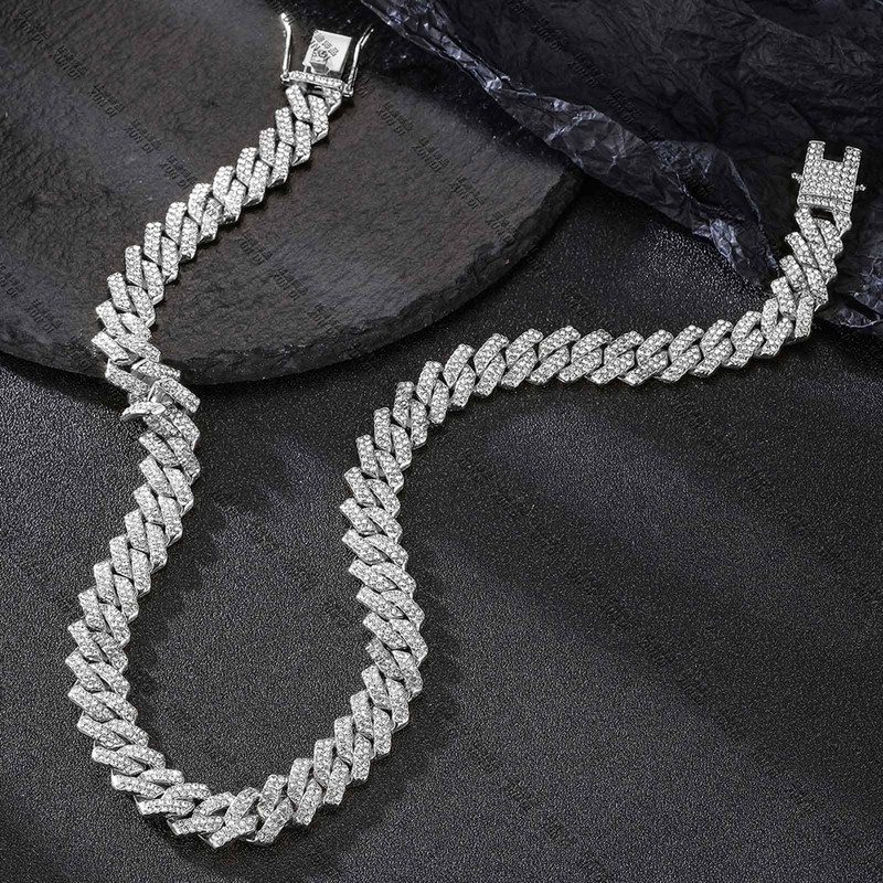 Xikui Cuban Chain Necklaces, Iced Out Miami Bling Diamond Hip Hop Jewelry Silver/Gold Cuban Link Chains for Men Women (18inch, Silver)
