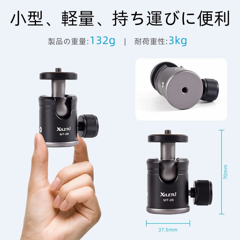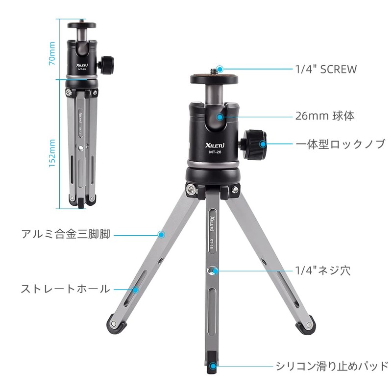 - Product basic information: Brand: XILETU; Product model number: XT15+MT26; Material: Aluminum alloy; Product net weight: 285g; Load capacity: 3KG; Storage length: 22.2cm; Interface screw size: 1/4"