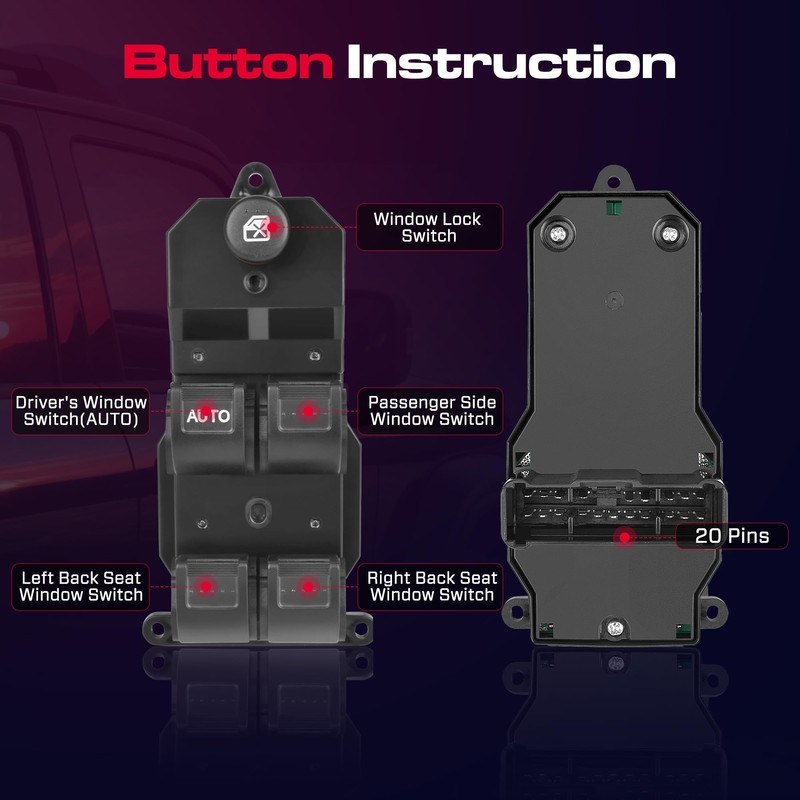 - Easy Installation: Come with a switch removal tool, easy to replace original factory window switch, plug and play. Power window switch fits, functions and matches the appearance of the original switch for a perfect replacement