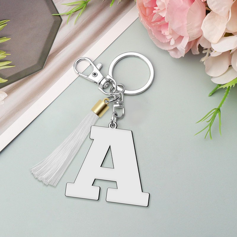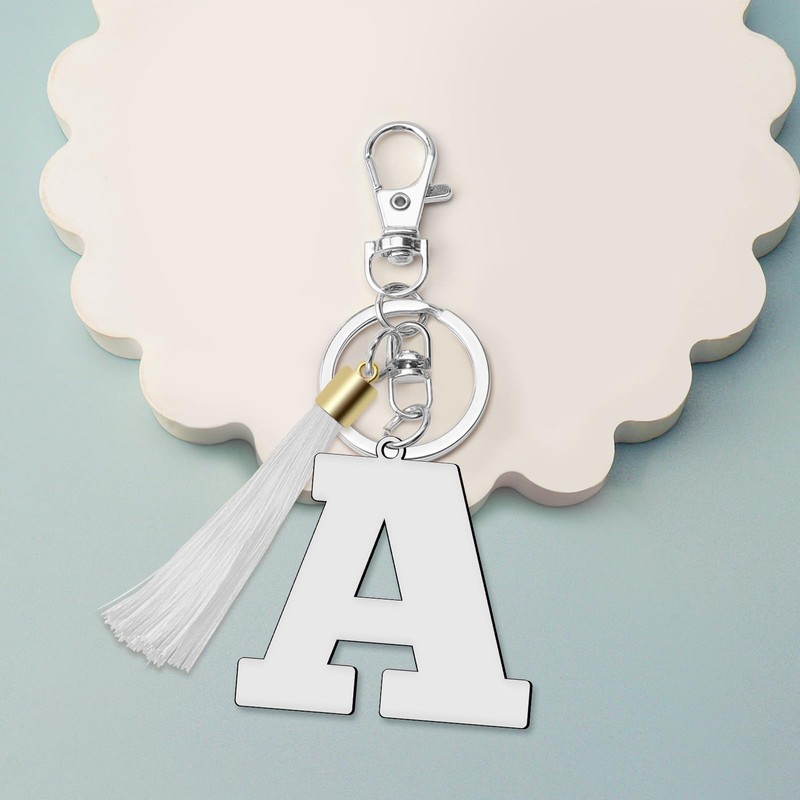 Ximalun Alphabet Initial Letter Keyring for Women Men Initial Letter A-Z Keyring Initial Letter Pendant with Key Ring Tassel Pendant Keychain for Wallet Backpack Bag