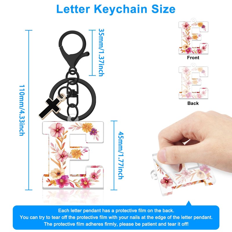 - [Initial Keychains for Women] This cute alphabet letter keychain is a versatile small accessory, the letter key chain is not only for keys but also can decorate your backpacks, wallets, purses, house keys, car keys, satchels, phone cases, lunchboxes, school bags, etc. You can choose exclusive name keychain according to the initials of your name, showing your personality and unique style.