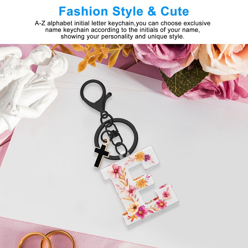Ximalun Initial Letter Keychain Gifts for Women,Acrylic Letter Initials Key China Alphabet A-Z Initial Letter with Cute Cross Charms for Purse Handbags Car Key Backpack Accessory(E)