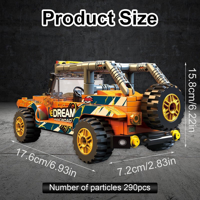 • Off-road vehicle building blocks: This simulation car model kit is individually packaged, complete with tyres, simulated carbon fibre stickers and display case. In addition, detailed instructions are included that are easy to understand and build.