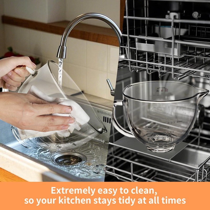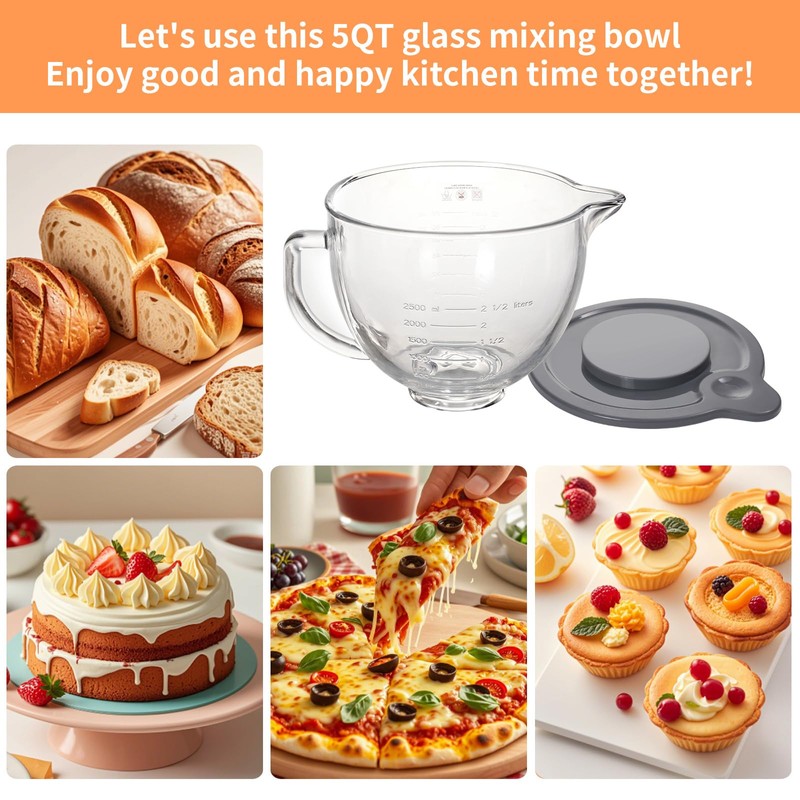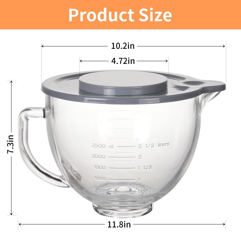 XINBOOGQ 5QT Glass Bowl Compatible with KitchenAid 4.5 and 5-Quart Tilt Stand Mixers,Glass Mixing Bowl with Lid, Measurement Markers and Handle, Dishwasher Safe