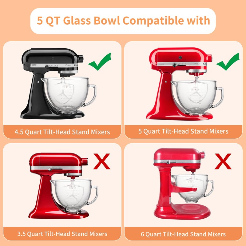 - Widely used: Compatible with KitchenAid 4.5 and 5 Quart Tilt-Head Stand Mixers for K45SS, KSM75, KSM90, KSM95, KSM96, KSM97, KSM100, KSM103, KSM105, KSM150, KSM152, KSM153, KSM154, KSM155, KSM158, KSM160, KSM175, KSM180, etc.Please confirm your machine model before purcha