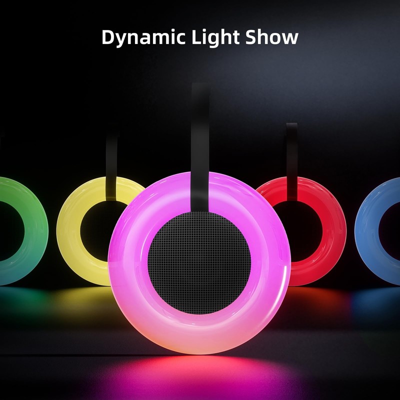 Xinborry IPX7 Waterproof Speaker with Dynamic LED Light,Bluetooth Shower Speaker,Portable Bluetooth Speakers,Floating, True Wireless Stereo for Outdoor/Pool/Beach,BT5.3/TF-Card,Ideal Gifts(Black)