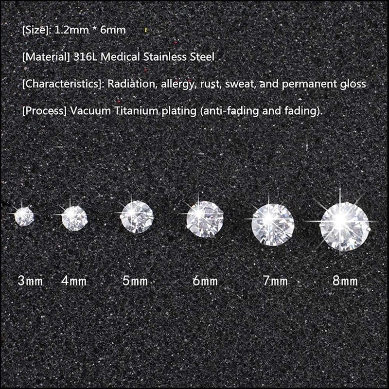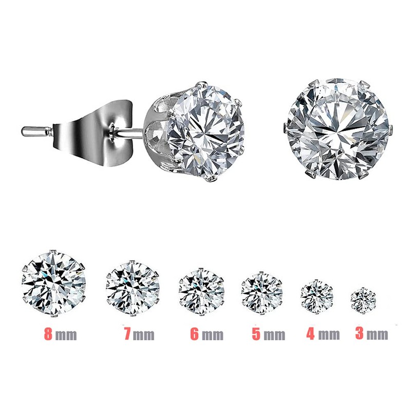 - 6 Pairs Silver Stud Earrings: Pack of 6 pairs sparkly cubic zirconia stud earrings, size 3, 4, 5, 6, 7 and 8 mm. Tiny stud earrings set are perfect for multiple piercings, suitable for ladies, women and men