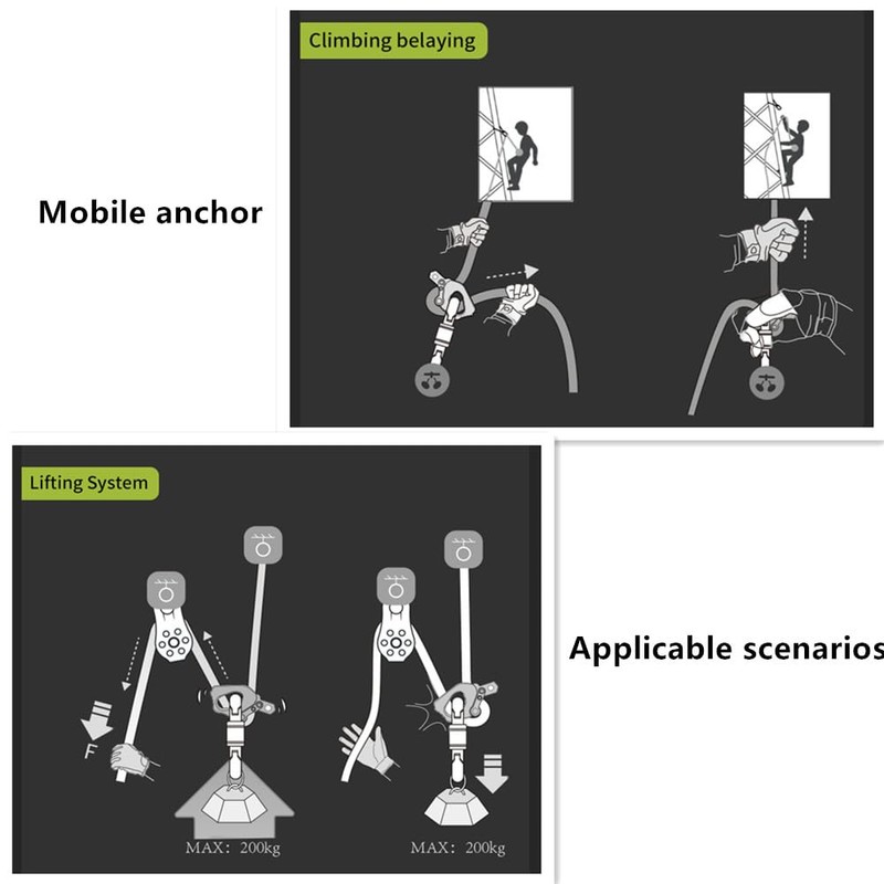 XINDA Adjustment Mobile Anchor, Stainless Steel Descender, Rock Climbing Area Restraint for Working at Height