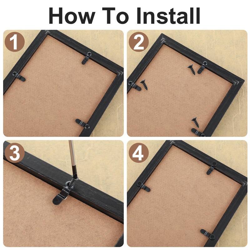 - Picture Frame Backing Clips Feature: Picture frame backing clips are made of iron metal material, which is sturdy, ensuring a long service life, and smooth surface without burrs. The screws are made of iron material, making them highly resistant to damage.
