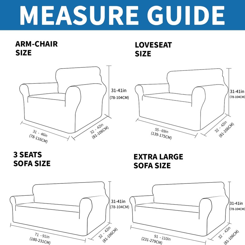 - 【PERFECT FIT】XINEAGE 1 piece modern Stretch couch cover are made from 85% Polyester and 15% Spandex jacquard material, which conforms to most couch shapes. Fit well for Chair 31-46"; Loveseat 55-69"; Sofa 71-91″ ; oversized sofa 91-110". Always measure couch back width before ordering the couch covers