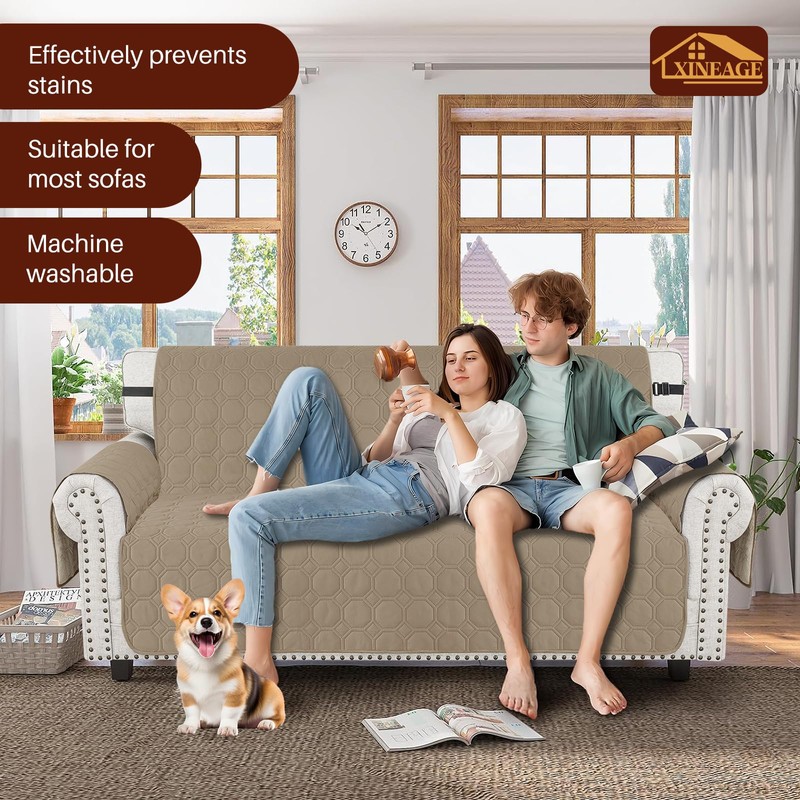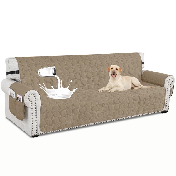 XINEAGE Oversized Couch Cover for 3 Cushion Couch Sofa Cover for Dogs 100% Waterproof Furniture Protector Slipcover with Elastic Straps for Pet (Large Sofa 79", Khaki)