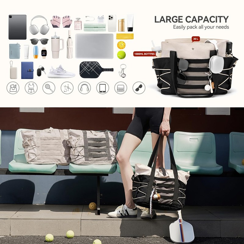 - Drawstring Design - Featuring an innovative open mesh design and side drawstring lanyard, this beach tote bag helps you organize your items while adding a fashionable touch. Perfect for beach bags for women, tote bags, or carrying sports gear. You can even personalize it with your favorite accessories, making it an ideal companion for beach vacations, cruise essentials, or beach bags waterproof sandproof.
