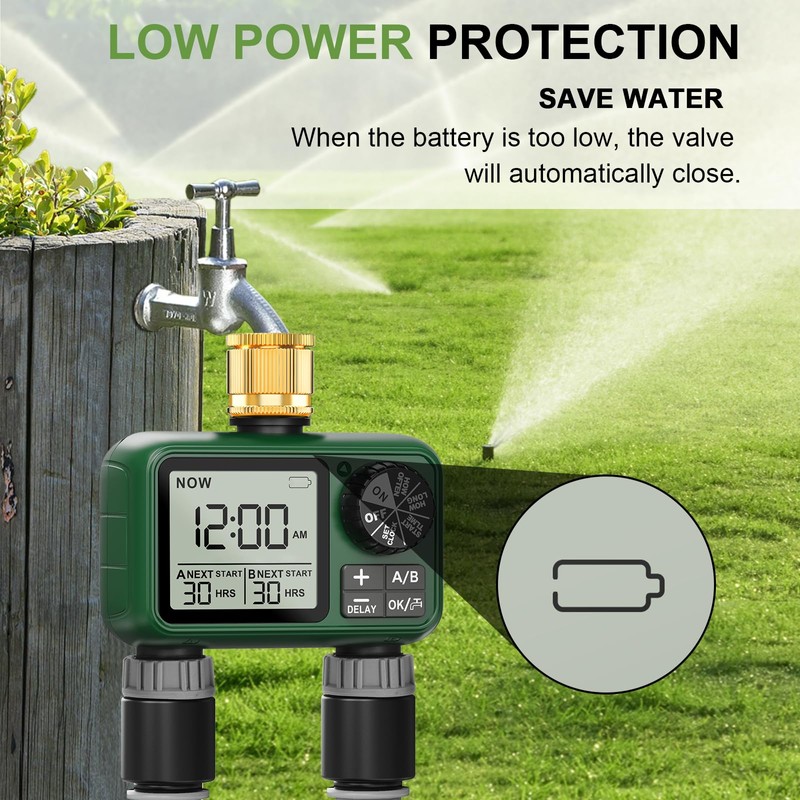 - 2 independent zones: the watering timer has 2 independent outlets that irrigate 2 different areas via a tap. A start time, watering duration and frequency can be programmed independently for each zone. Designed to meet the different needs of your plants.