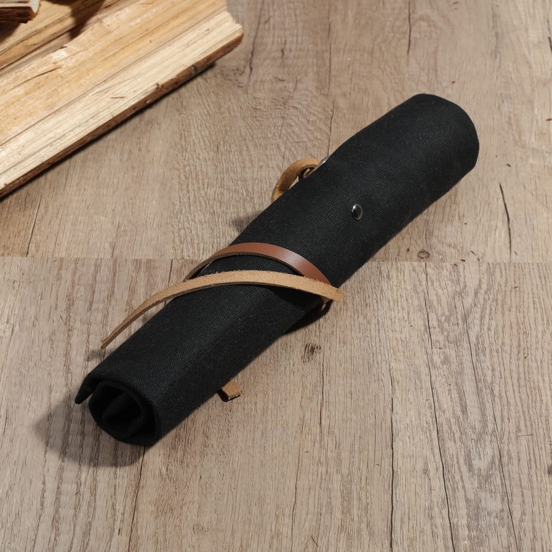 Xingte Heavy Duty Waxed Canvas Chisel Roll Bag, Multi-function Tool Bag with 4 Tool Pockets, Leather Rope, Black