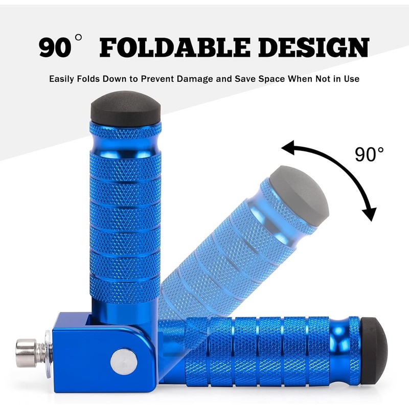 XINGWU M8 Motorcycle Foot Pegs 90 Degree Foldable Bike Pegs CNC Anti-Skid Universal for Super 73 Yamaha Honda Suzuki Aprilia Electric Car Motorbike Scooter Mini Bike Ebike Dirt Bike Go Kart (Blue)