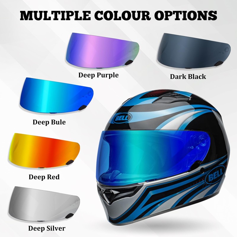- Fitment: Designed motorcycle helmet visor for Bell Qualifier, Star, Vortex, RS-1, and Revolver helmets. (Note; This is a aftermarket product. If you like night riding, please clean bug stains promptly to prevent damage to the electroplating.)