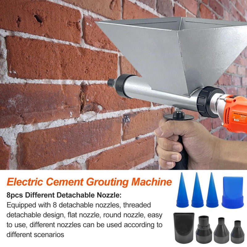 Included: You will receive 1 electric mortar pointing grouting gun, 1 handle, 2 flat nozzles, 3 round nozzles, 3 pointed nozzles and 3 washers.
