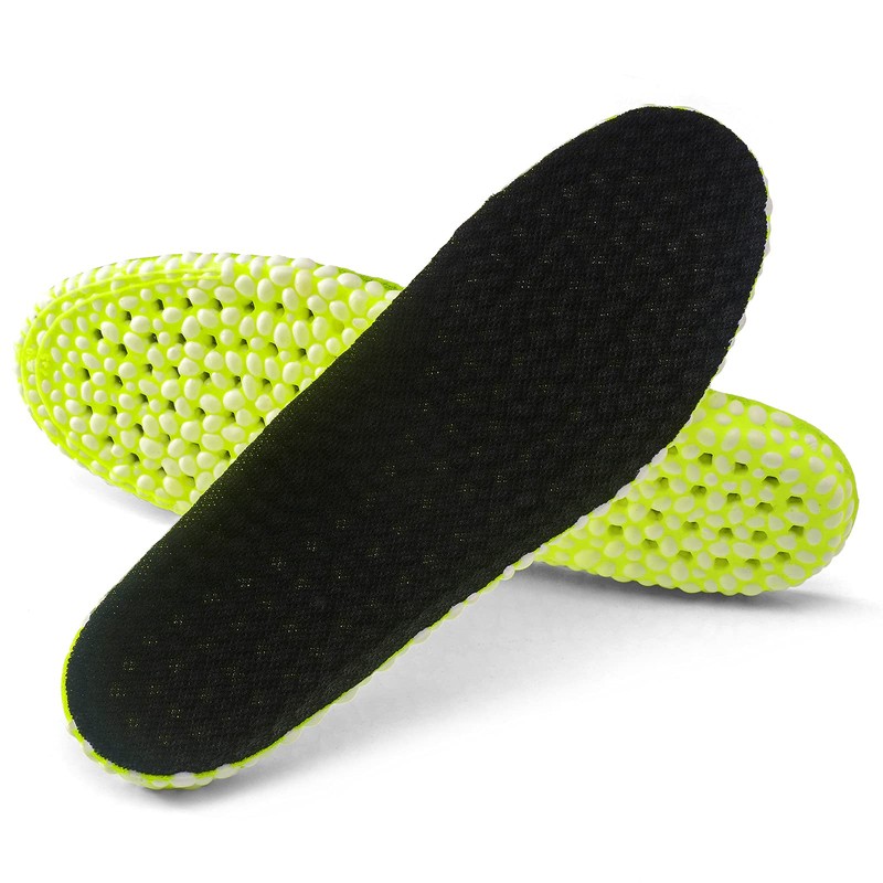 - SHOCK ABSORPTION & BREATHABLE This insole features an upgraded popcorn construction design, which protects your foot from slipping on the surface of the insole and reduces cushioning. Breathable comfort mesh surface, makes you comfortable and lightweight, without stuffy feet