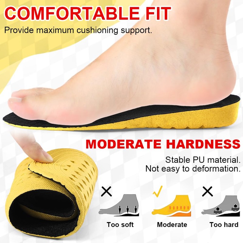• Suitable for Various Scenarios: The insoles are perfect for improving performance and reducing fatigue in everyday life. Good cushioning reduces impact on joints and muscles and relieves pain caused by leg length discrepancies