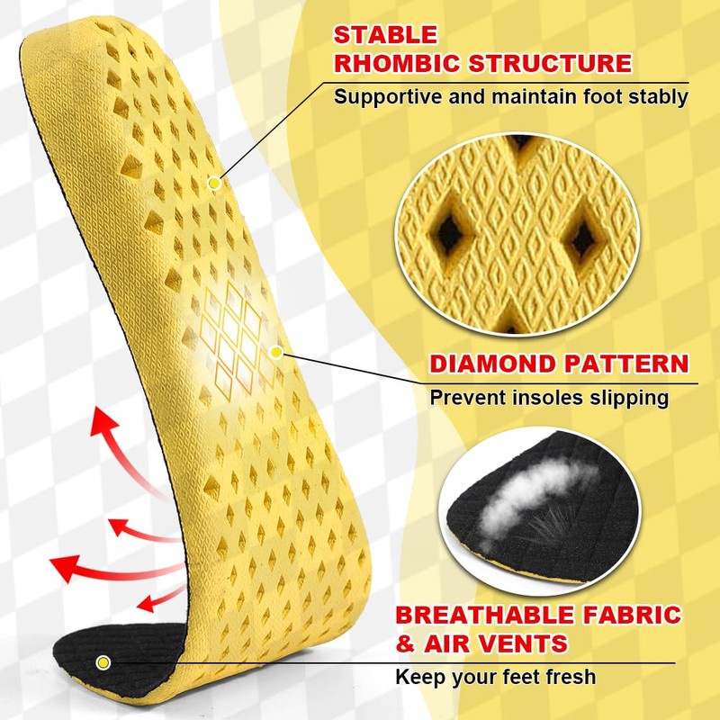• Excellent Quality: The insoles are made of high-quality PVC material with diamond-shaped mesh holes on the soles, soft and breathable. Make your feet feel good and increase the comfort of shoes. Package include:1 pair of shoe insoles
