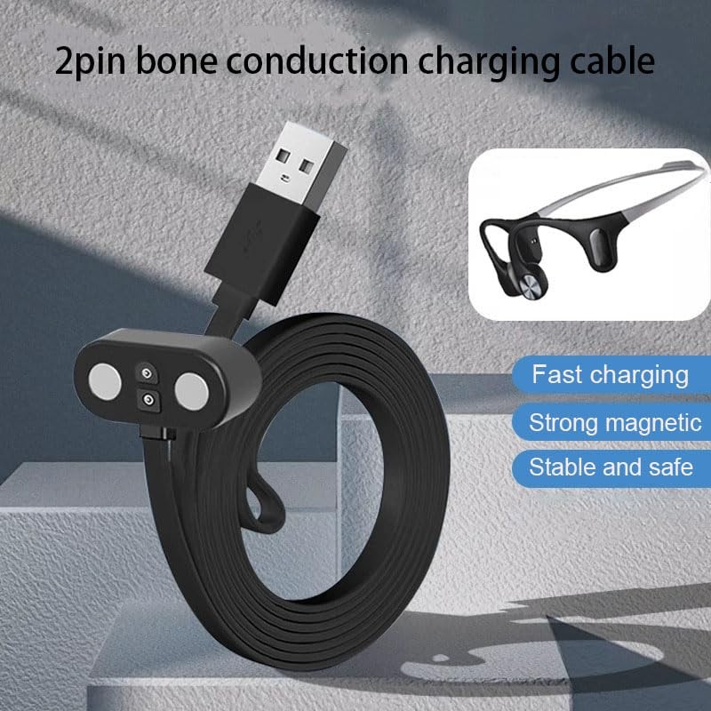 Xininyia 1-Pack 2pin Magnetic Charging Cable for Bone Conduction Headphones Charger- Open Ear Headphones USB Charging Cord(Only for 2pin T-Shape Headphone Charger)