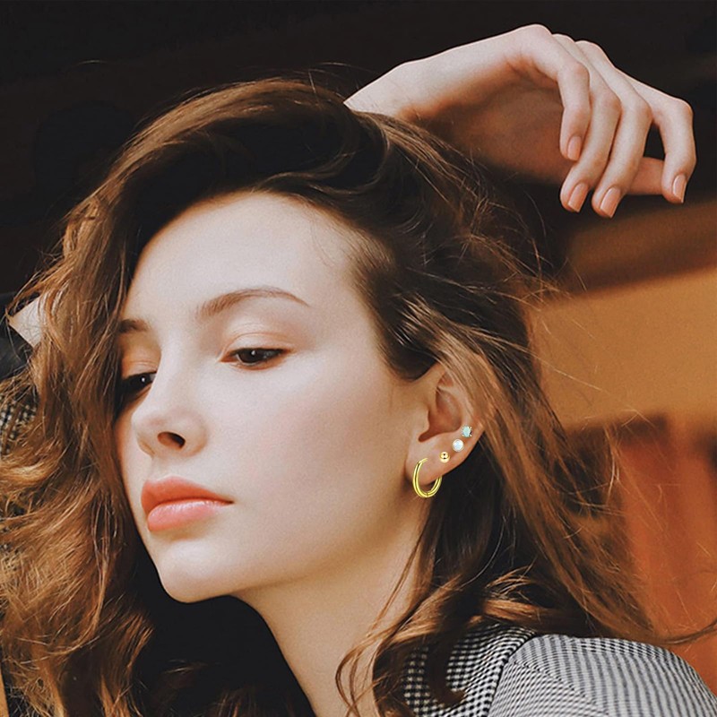 - 【Earrings Size】--Gauge:20G(0.8mm) pin thickness, post length: 7mm, flat back size: 5mm, opal/cz/ball diameter: 4mm. Hoop earrings inner diameter: 8mm/10mm/12mm. Well fitted and stackable, can be used as sport/nap/sleeper earrings, safe and comfortable to wear.